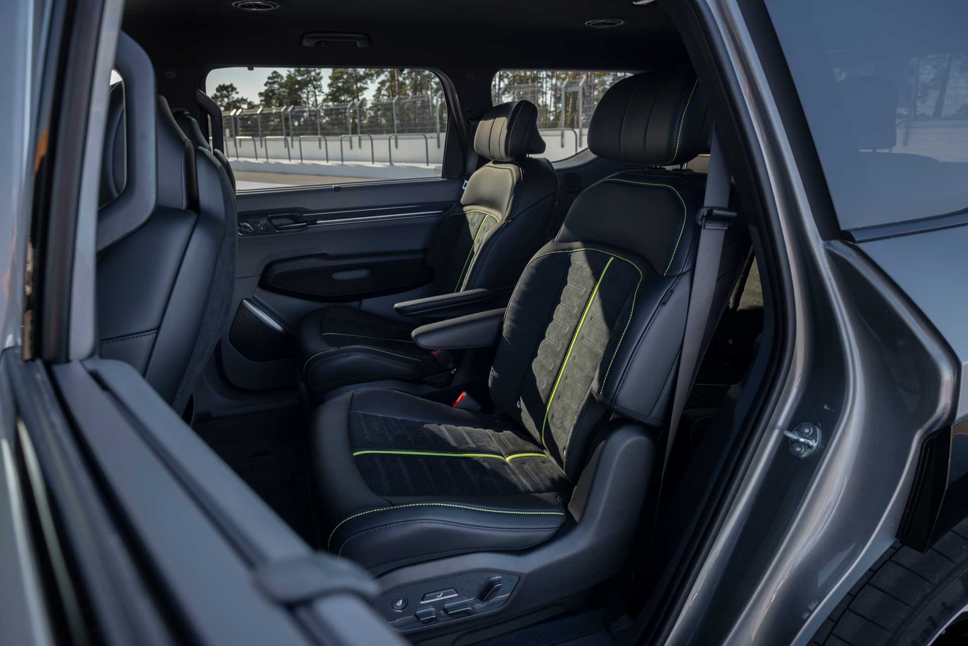 Nya Kia EV9 GT är en helelektrisk prestanda-SUV med 508 hk, dubbla elmotorer och fyrhjulsdrift (AWD). Kia EV9 GT är byggd på Kias prisbelönta E-GMP-plattform med 800-voltsteknik som ger en räckvidd på upp 510 km* och ultrasnabb laddning från 10–80 % på ner till 24 minuter. Den ikoniska designen har förstärkts med neongröna detaljer, ett unikt dynamiskt ljusmönster i fronten, ”Energetic” och exklusiva 21-tumsfälgar. Tillsammans med innovativ teknik som elektroniskt kontrollerad stötdämpning och en åtta-växlad virtuell växellåda (VGS), levererar EV9 GT en körupplevelse utöver det vanliga. Finns att beställas som sju- eller sexsitsig med två Relaxation-stolar på andra sätesraden.